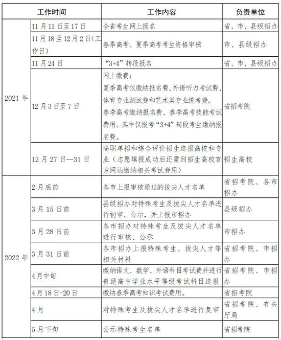 资格审核:2021年11月18日至12月2日,具体时间由各市或县(市、区)招生考试机构确定。
