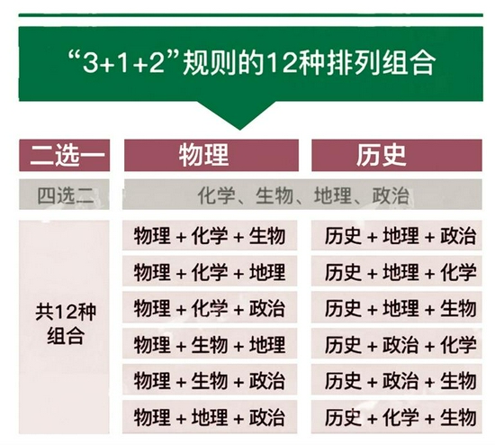 据公开报道,目前新高考实行的主要就是两种模式:3+3和3+1+2。陕西上报的方案是“3+1+2”模式。以已经实施该模式的省份为例,“3”即全国统一考试科目,包括语文、数学、外语(含英语、俄语、日语、法语、德语、西班牙语)3门科目,不分文理,使用全国卷;“1”是指学生根据高校选科要求,结合自身特长兴趣,在历史和物理中选择1门;“2”则从思想政治、地理、化学、生物学中选择2门。