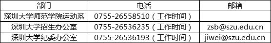 3.第一志愿报考我校且符合我校报考条件,但因其他特殊原因无法正常报名的考生,须在2022年3月10日12:00前联系我校招生办公室(联系电话:0755-26536235),并将填写好的《报名申请表》(见附件1,需考生本人亲自手写签名,请留有效手机号码)扫描或拍照后发至我校招生办公室电子邮箱(zsb@szu.edu.cn),经我校报送国家体育总局科教司审核通过后进行补报名,逾期不予受理。