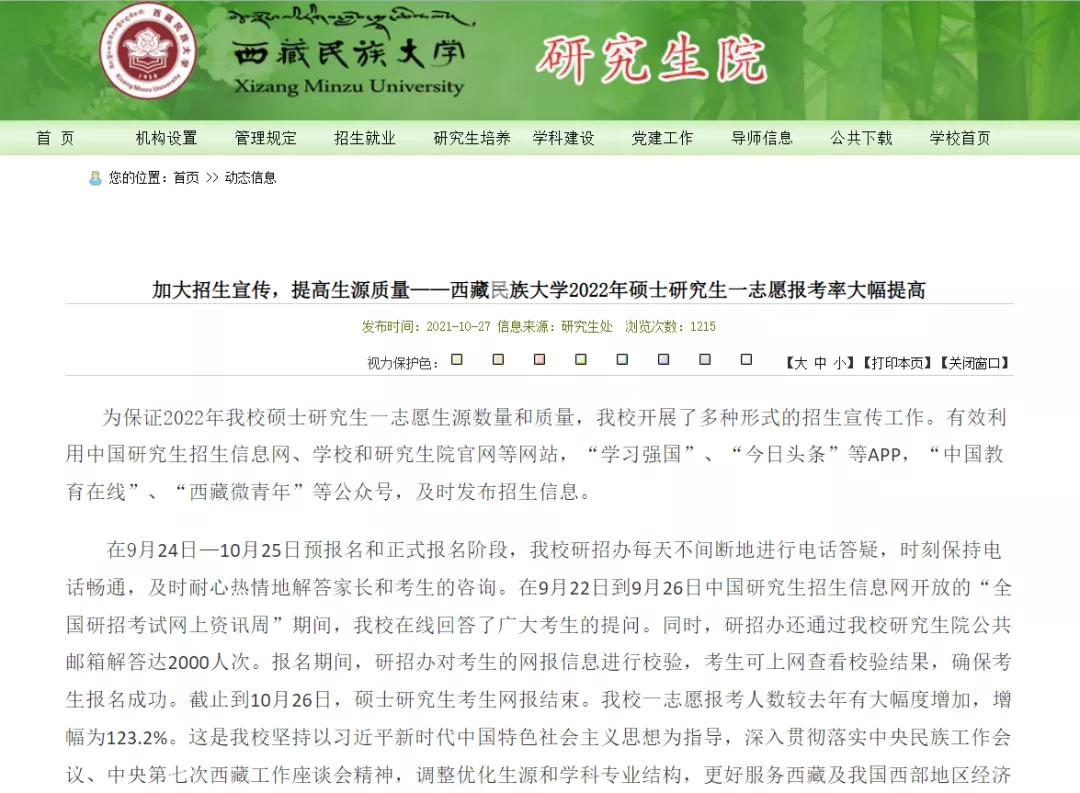 早前,西藏民族大学研究生院在一则新闻中写道,“我校一志愿报考人数较去年有大幅度增加,增幅为123.2%。”这所地处陕西咸阳、办学已有63年历史的高校,在研究生源上迎来的大幅增长,恰是今年非“双一流”高校考情的一个缩影。