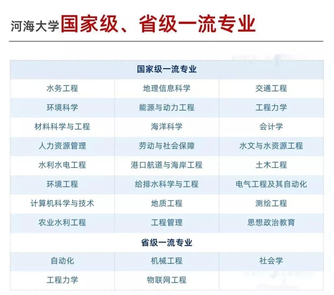 以下为河海大学国家级、省级一流本科专业建设点名单,供各位考生和家长志愿填报参考: