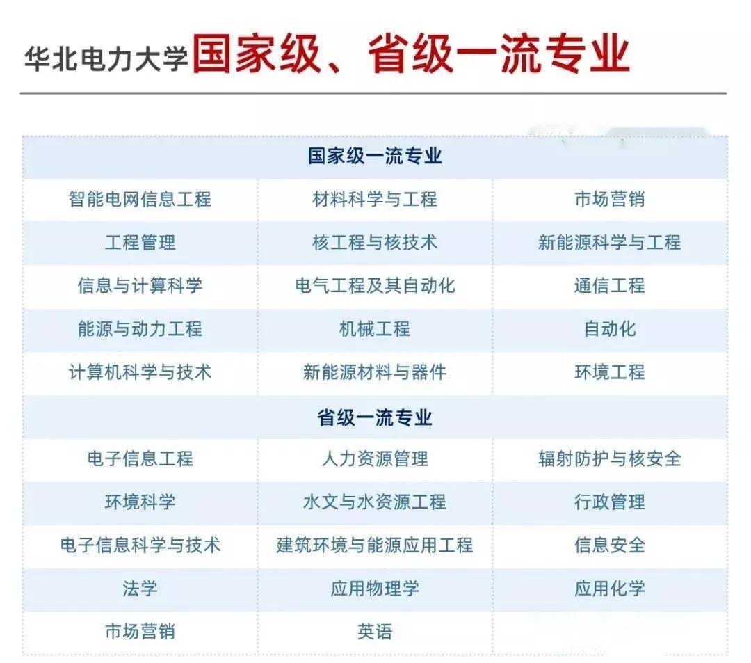 以下为华北电力大学(北京)国家级、省级一流本科专业建设点名单,供各位考生和家长志愿填报参考: