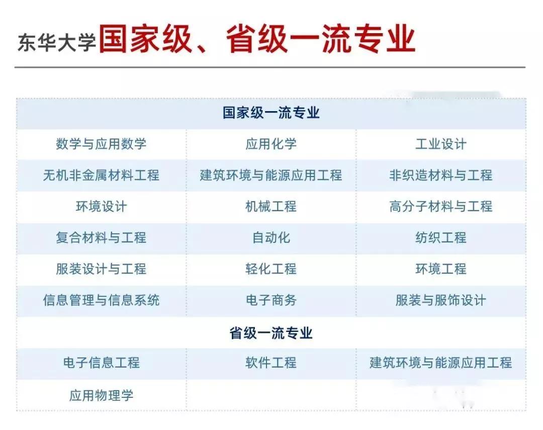以下为东华大学国家级、省级一流本科专业建设点名单,供各位考生和家长志愿填报参考: