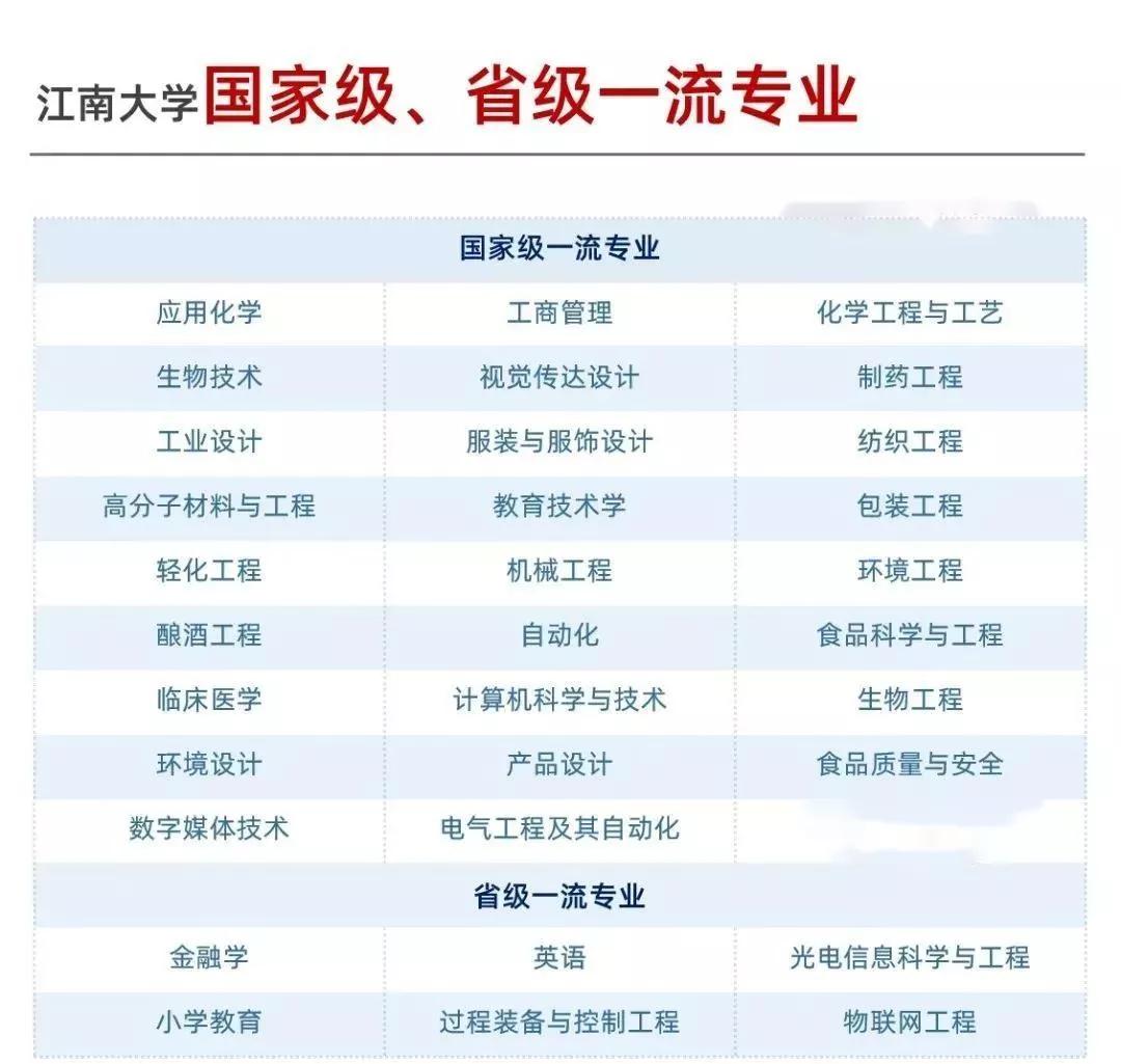 江南大学国家级、省级一流本科专业建设点名单,供各位考生和家长志愿填报参考: