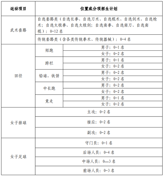 2022年我校高水平运动队计划在全国招生50名,具体项目招生计划及优惠政策如下: