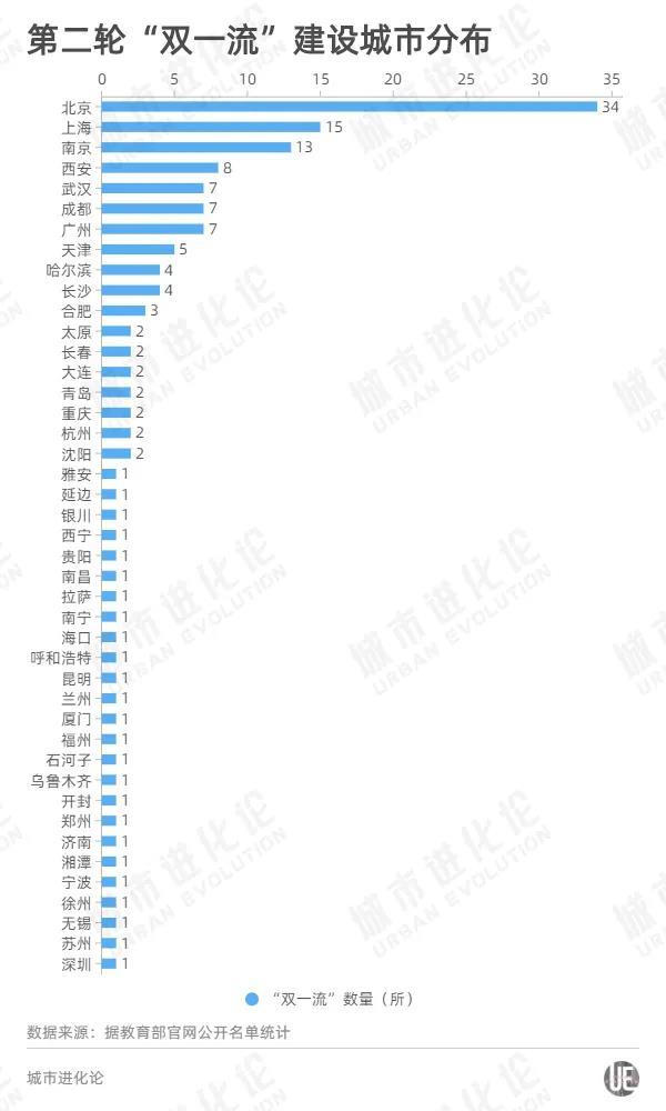 具体到城市维度,入围新一轮“双一流”建设名单的147所高校,分布于全国43座城市。