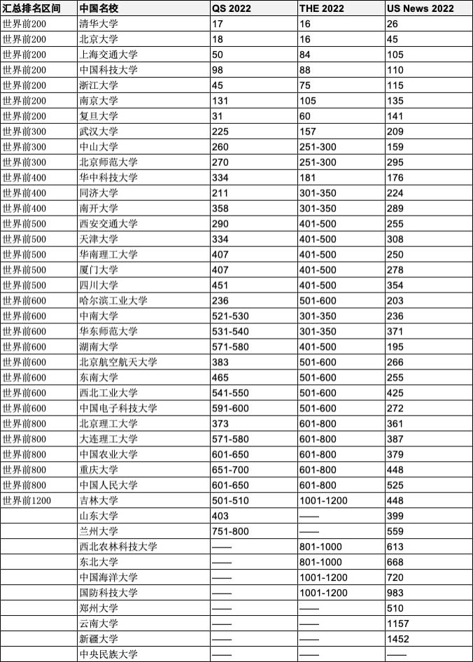 另外,武汉大学、华中科技大学、中山大学、南方科技大学、湖南大学、中国科学院大学在1个或2个世界大学排名中进入世界前200名。