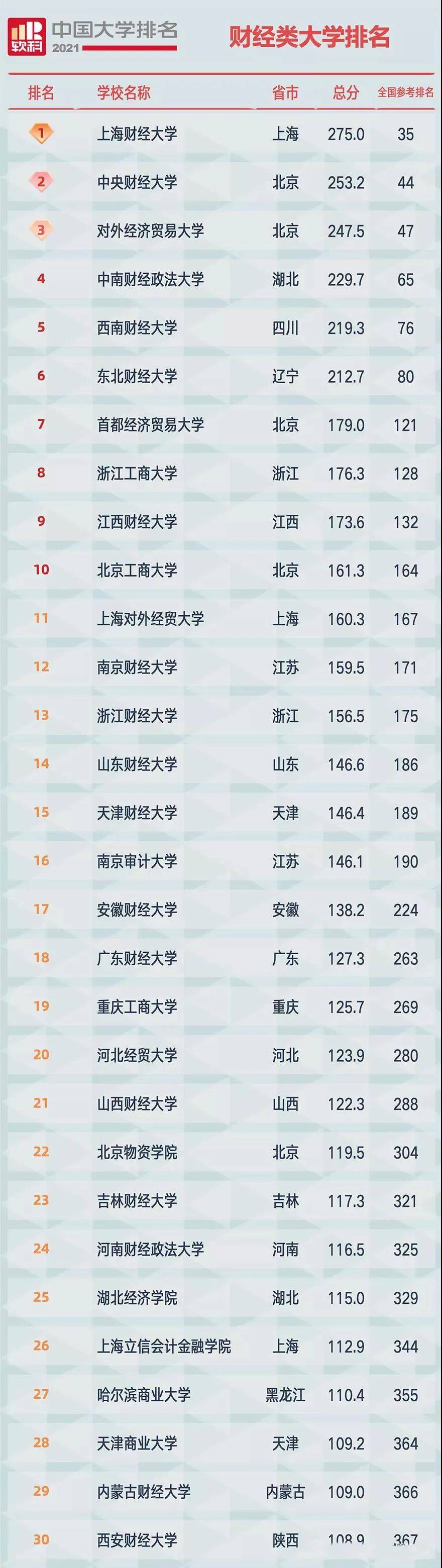 在2021软科发布的财经类大学排名中,上海财经大学蝉联第一!前六名继续被五财一贸包揽。