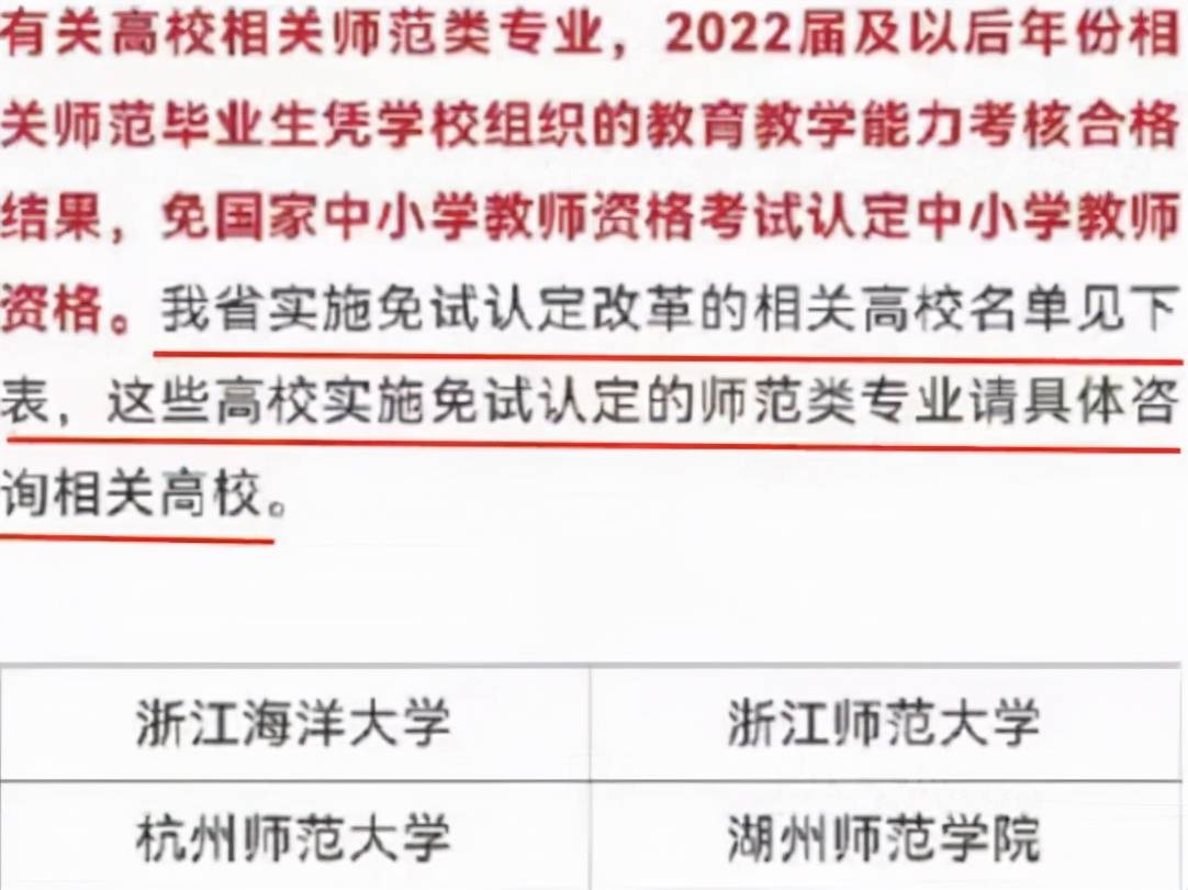 虽然不是所有的高校,但目前已经有部分高校宣布师范生免试认证,也就是说,考上这部分高校的师范生,也可以直接拿到教师证不需要考试了。像浙江师范大学、杭州师范大学以及宁波大学等。