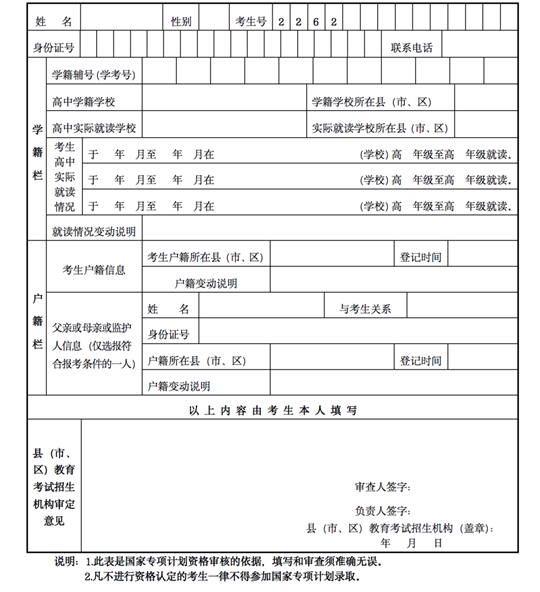 各级教育考试招生机构、高校要联合公安等部门进一步健全联合审核工作机制,科学合理确定专项计划实施范围,严格执行专项计划报考条件,严格考生报考资格审核,充分利用公安户籍系统、中小学生学籍系统和高考报名信息,细化资格审核办法,认真核查考生报名信息、纸质档案信息、中小学生学籍系统信息,确保考生户籍、学籍真实准确、内容一致。高校专项计划其他报考条件由招生高校审核,有关教育行政部门、考试招生机构和中学要予以积极配合。对于审查过程中不能确定考生资格的,县(市、区)教育考试招生机构可要求考生进一步提供规定条件以外其他证明材料。坚决取消不符合实施区域、学籍、户籍等要求的考生资格。高校对资格存疑的考生,要及时商请有关教育考试招生机构复核,坚决取消不符合要求的考生资格,确保报名资格审查工作的严肃性和公正性,严防资格造假和违规录取。