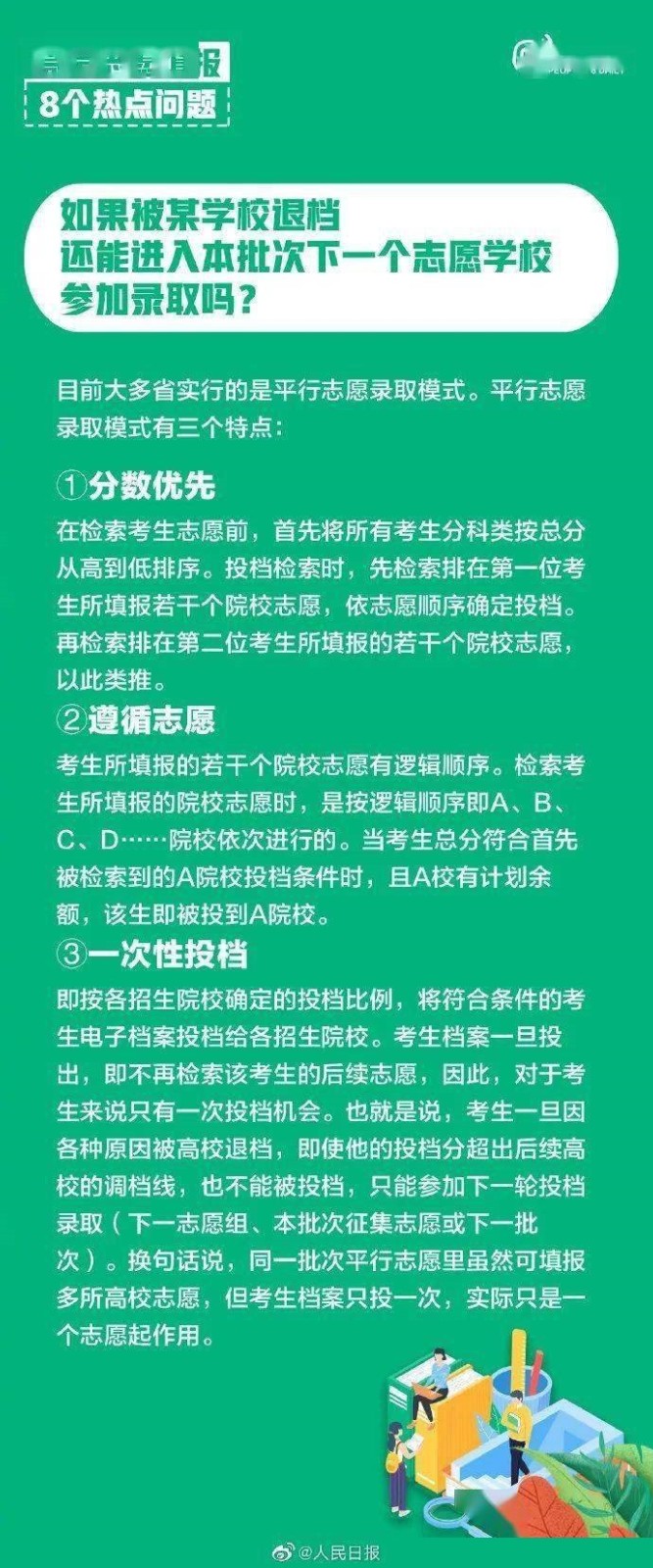俗话说“七分考、三分报”,志愿填报也是一门学问。平行志愿105%投档,那剩余的5%就被退档了吗?专业级差是每个学校都有吗?高考志愿填报8个热点问题,转发收藏!