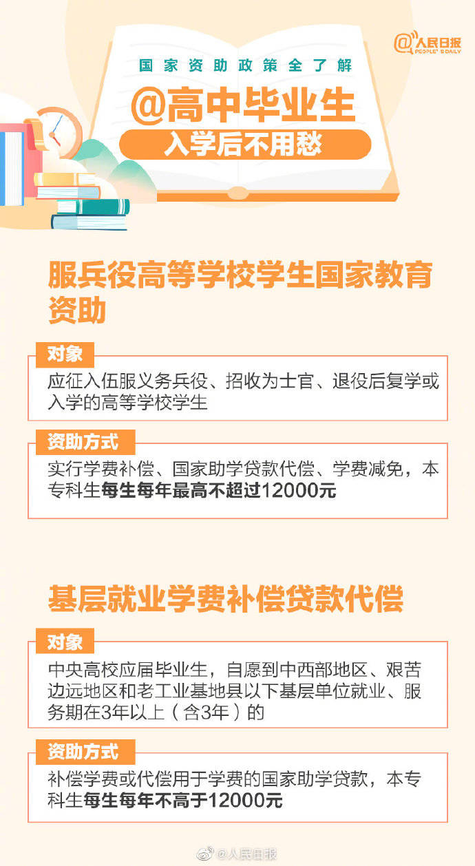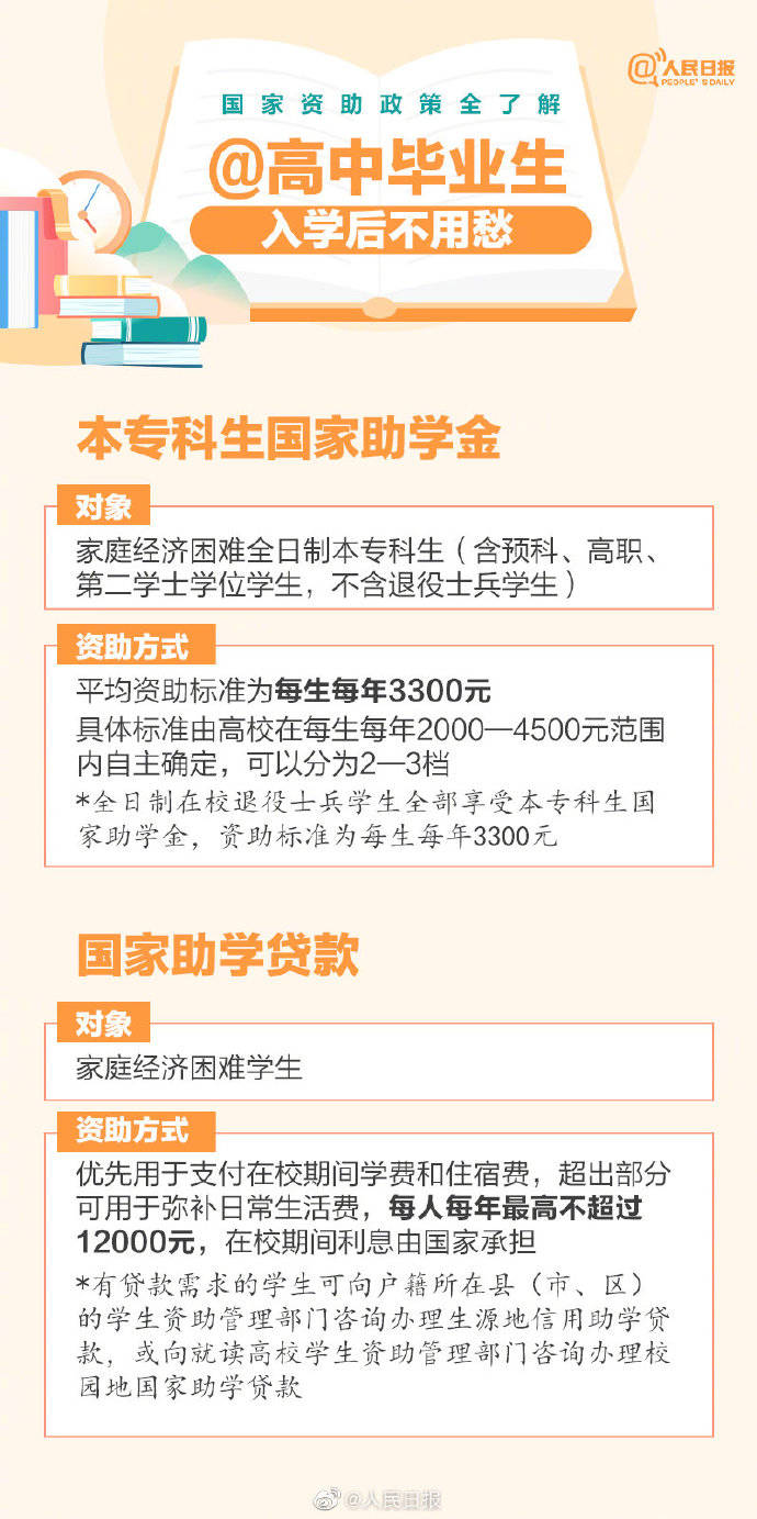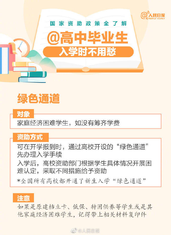 近日,全国学生资助管理中心致信初、高中毕业生,介绍不同阶段国家资助政策。免学费政策、国家助学金、国家励志奖学金、国家助学贷款、绿色通道…国家资助政策全了解↓↓不让一个学生因家庭困难而失学,收藏了解!
