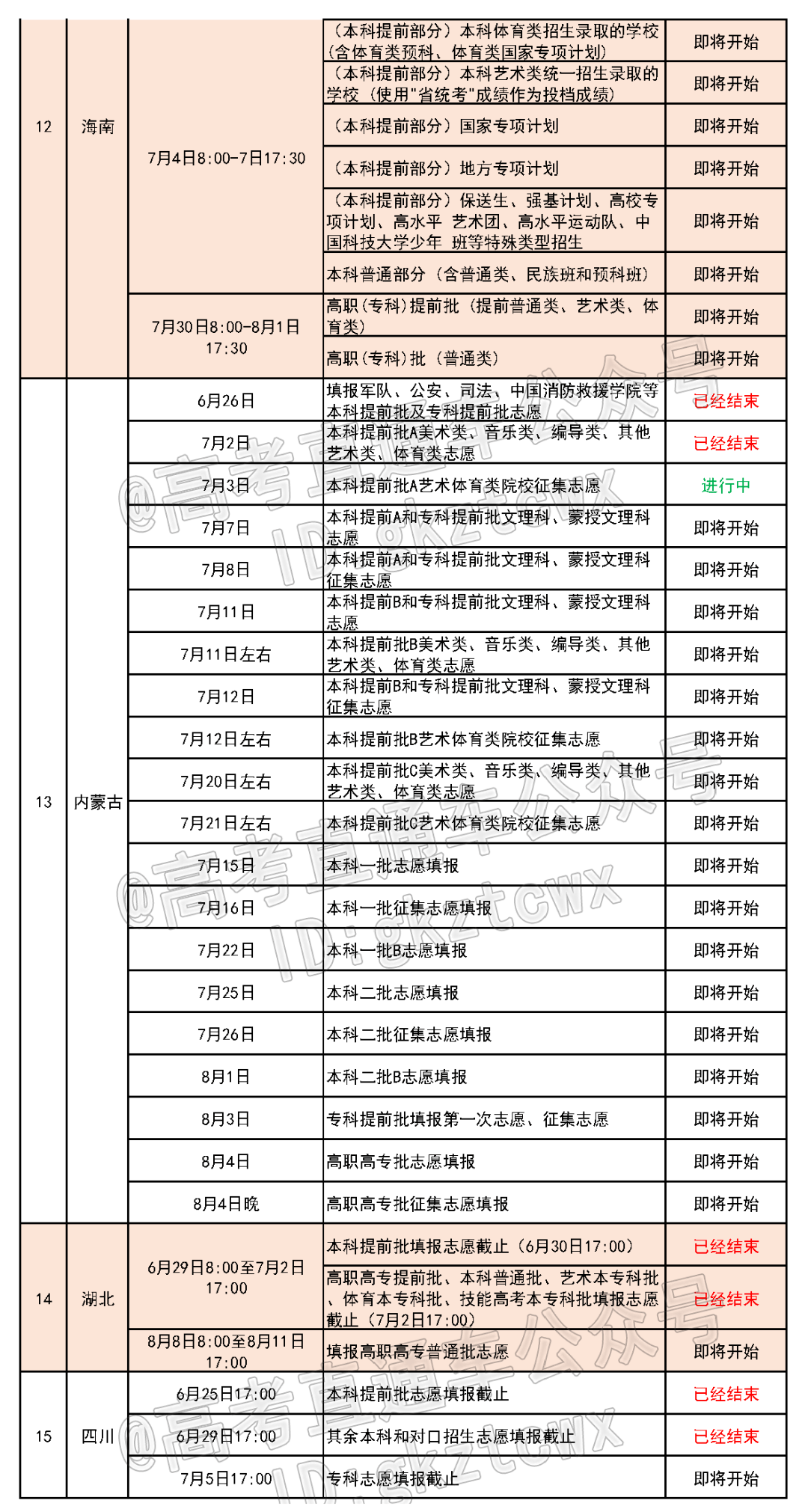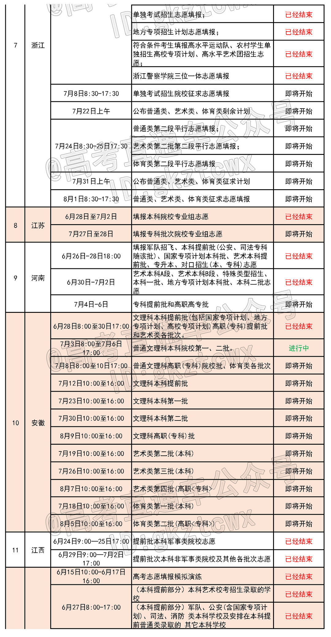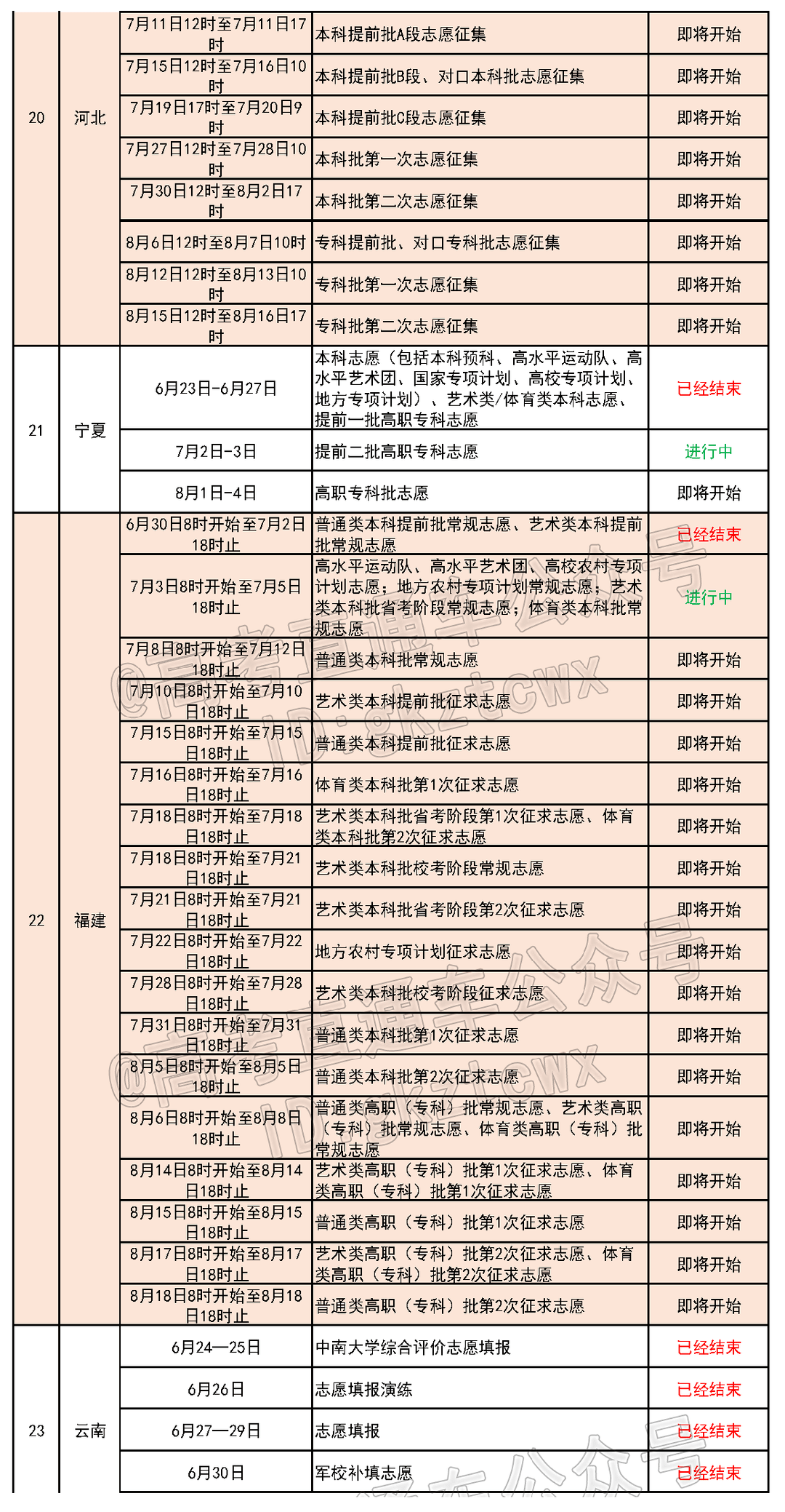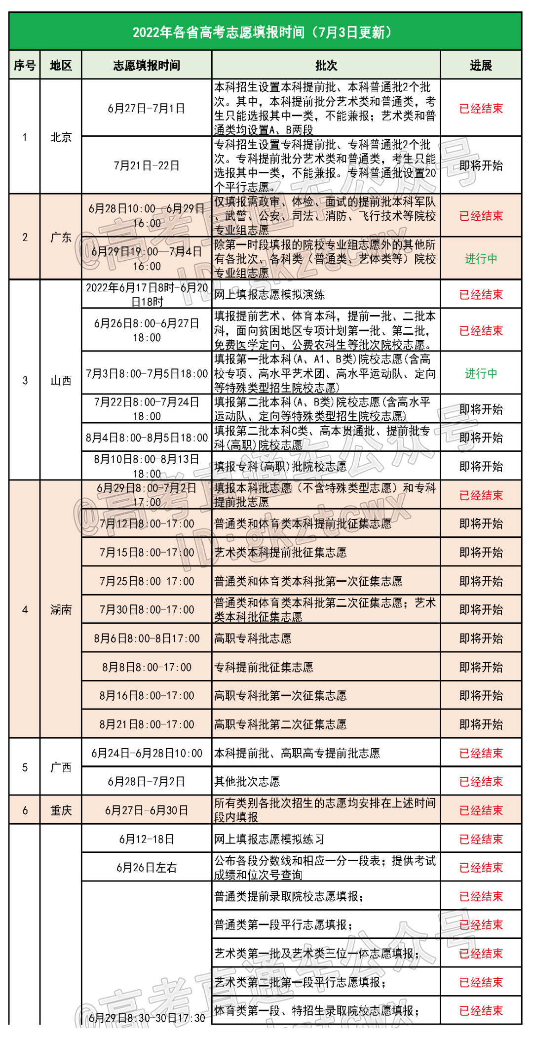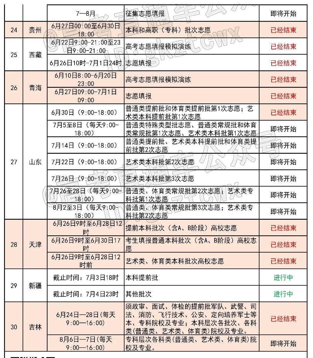 全国各省份填报志愿最新进度