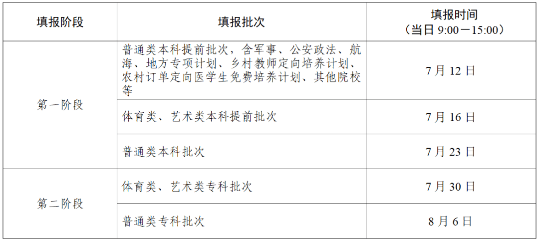 6.高职(专科)批院校录取:8月7日至15日。