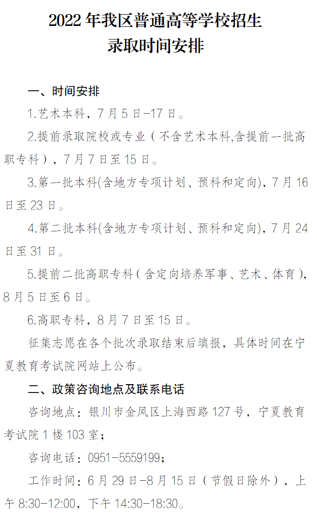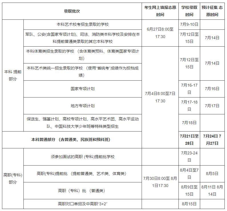 2.本科批院校录取:7月11日至23日。