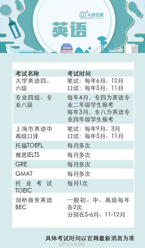 注:各考试时间或有调整,具体请以相关部门最新发布为准。