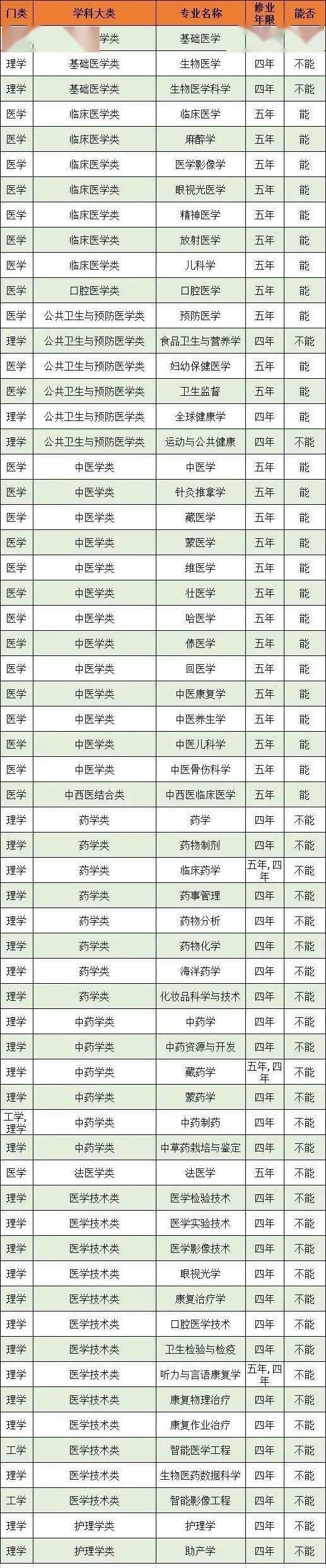 下面是根据2022年医学学科门类本科专业设置的目录,归纳整理哪些专业能报与不能报执业医师资格证:
