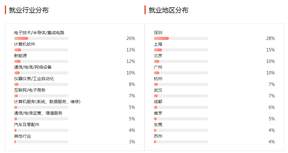 学生在毕业后能从事自动控制、自动化、信号与数据处理及计算机应用等方面的技术工作。就业领域也非常宽广,包括高科技公司、科研院所、设计单位、工矿企业、大专院校、金融系统、通信系统、税务、外贸、工商、铁道、民航、海关及政府和科技部门等。主要从事与电子信息有关的系统运行、自动控制、电力电子技术、信息处理、试验分析、研制开发、经济管理以及电子与计算机技术应用等领域的工作。该专业适合升学考研。