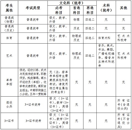 考生属性与考试科目之间的关系说明详见下表: