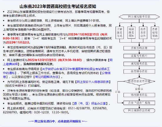山东省高考报名自今日(2022年11月9日)开始进行。2023年高考报名分为网上填报信息、网上资格审核、网上确认并缴费等3个阶段。