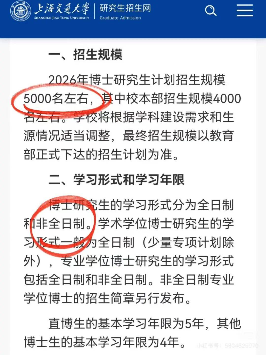 上海交大这次的博士招生规模达到了5000人,而且还有“非全日制”博士。
