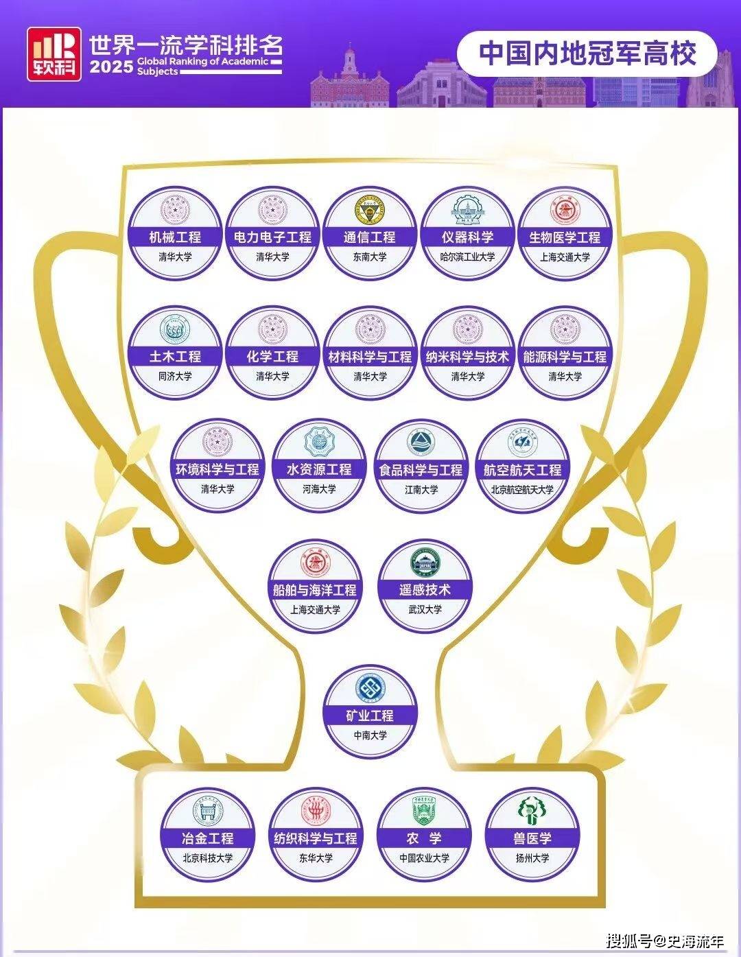 2025年软科排名中,中国内地高校的21个全球冠军学科覆盖工学、农学、医学等关键领域,既彰显了我国在优势学科上的全球引领地位,更蕴含着服务国家战略与民生需求的重要价值。