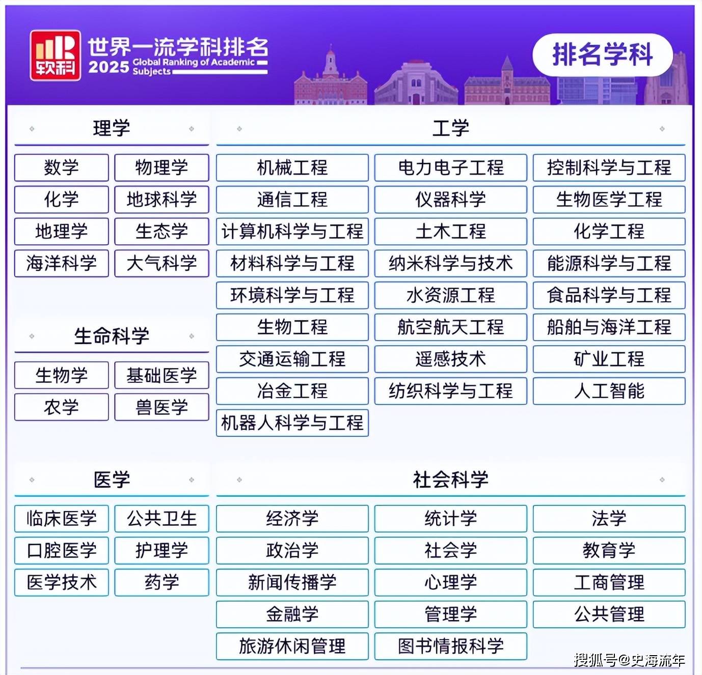 作为高等教育评价专业机构,软科的排名覆盖理学、工学、生命科学、医学和社会科学五大领域,2025年已扩展至57个学科,评价对象涵盖全球3000余所大学,最终榜单汇集92个国家和地区的2000余所高校近2万个学科点,样本规模的广泛性为排名的客观性奠定了基础。