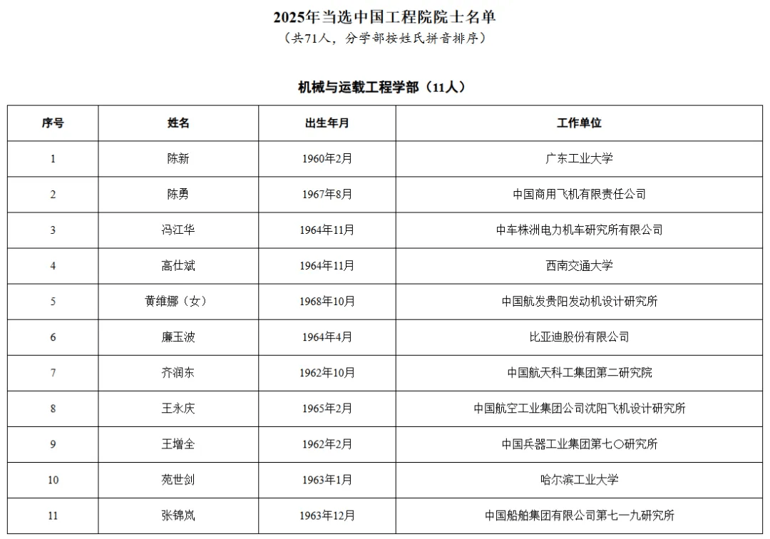 2025年两院院士增选结果明确体现了以下战略倾向: