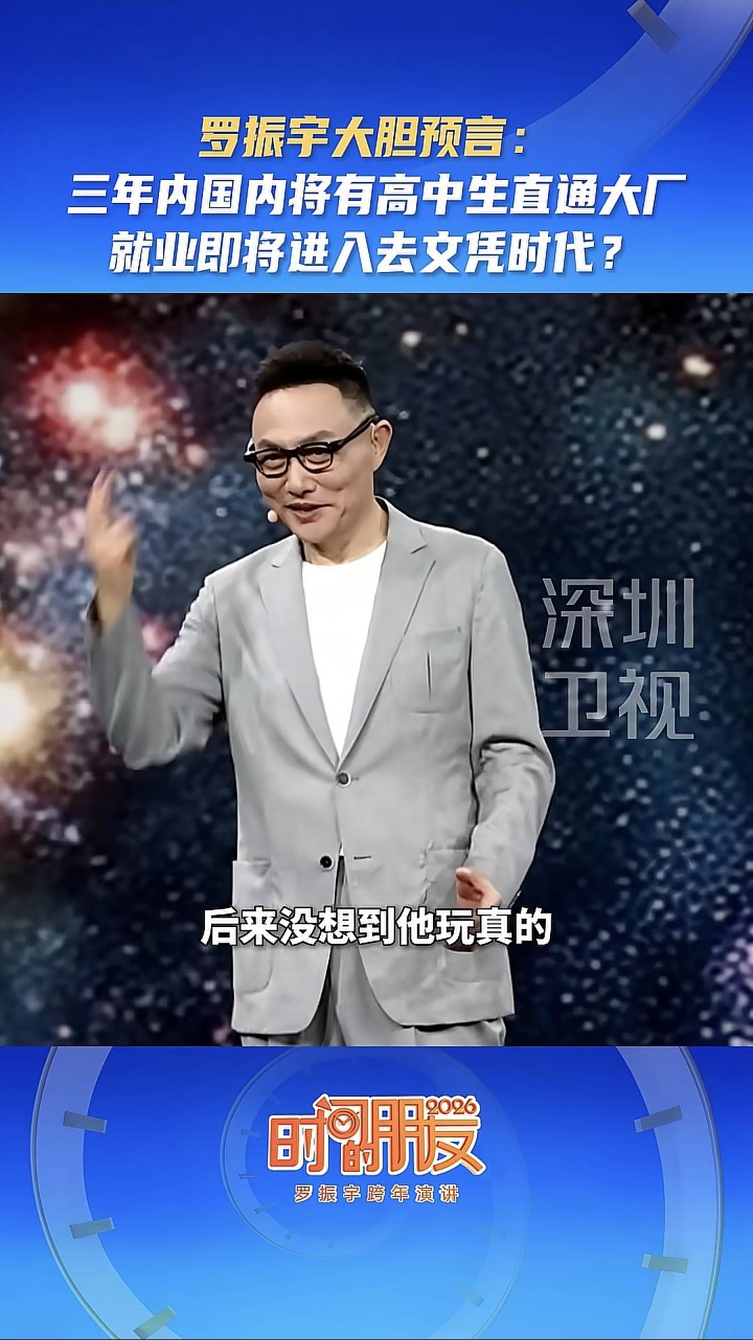 就在刚刚结束的跨年演讲中,罗振宇抛出了一个让教育界和职场同时地震的预言: