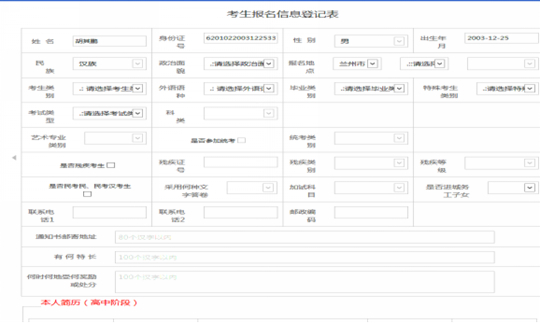 3.凡在甘肃省参加过学业水平考试的考生输入完成后直接进入第7步。
