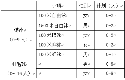 1.招生项目:游泳、羽毛球