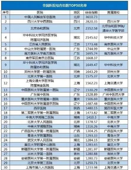 全国综合指数较高的医院多为高校附属医院,随着高校与医院之间的协同合作增强,我国医学整体实力将有长远进步。