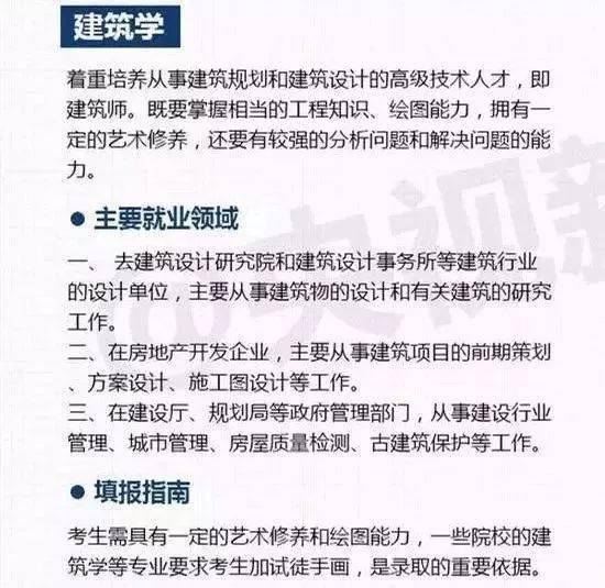 但想报考这一专业的同学要注意一点:建筑学专业需要学生有一定的艺术修养。那些具备空间想象力、造型能力和表现能力,同时有较强的沟通能力和吃苦耐劳精神的学生比较适合学习建筑专业。