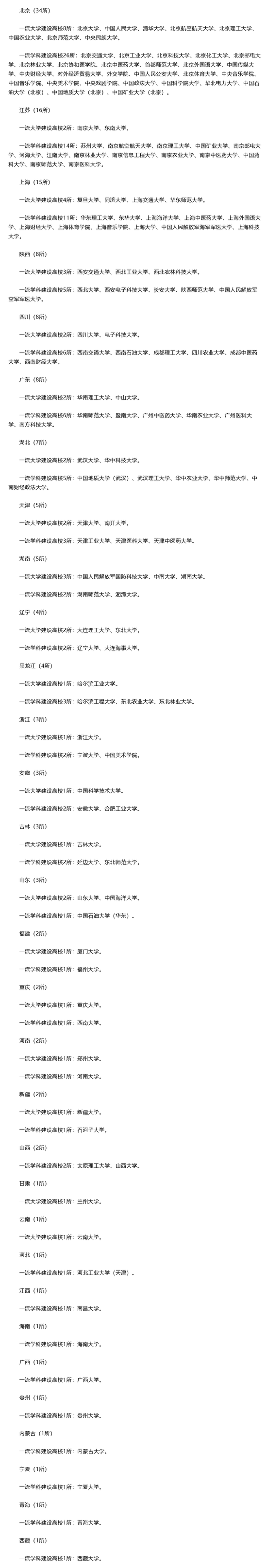 各省市“双一流”高校情况: