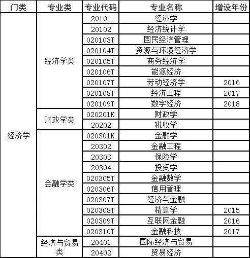 经济学门类下有经济学、财政学、金融学、经济与贸易等几类专业。
