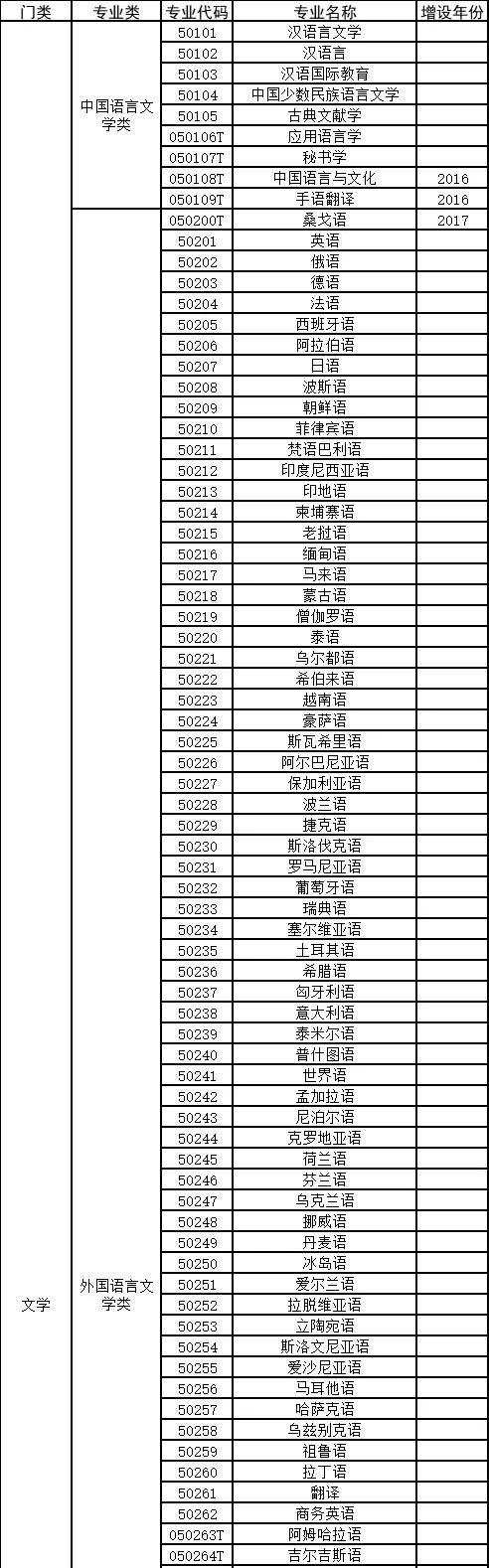 文学门类下有中国语言文学、外国语言文学、新闻传播学等几类专业。