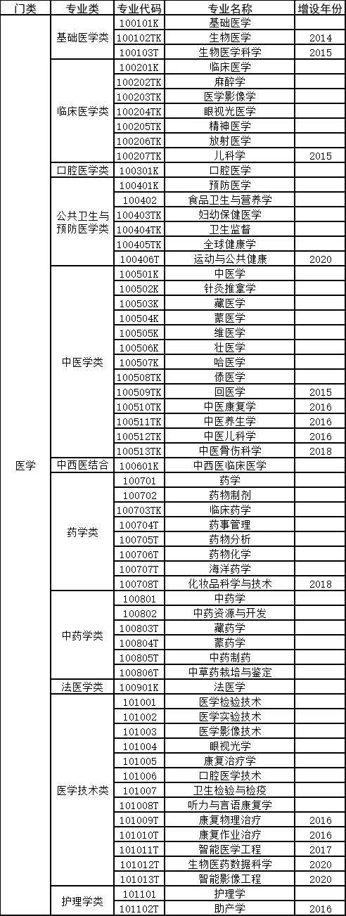 医学门类下有基础医学、临床医学、口腔医学、公共卫生与预防医学、中医学、中西医结合、药学、中药学、法医学、医学技术、护理学等十几类专业。