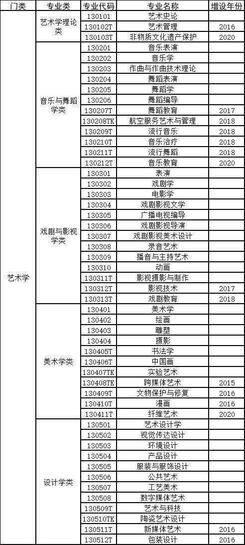 艺术学门类下有艺术学理论、音乐与舞蹈学、戏剧与影视学、美术学、设计学等几类专业。