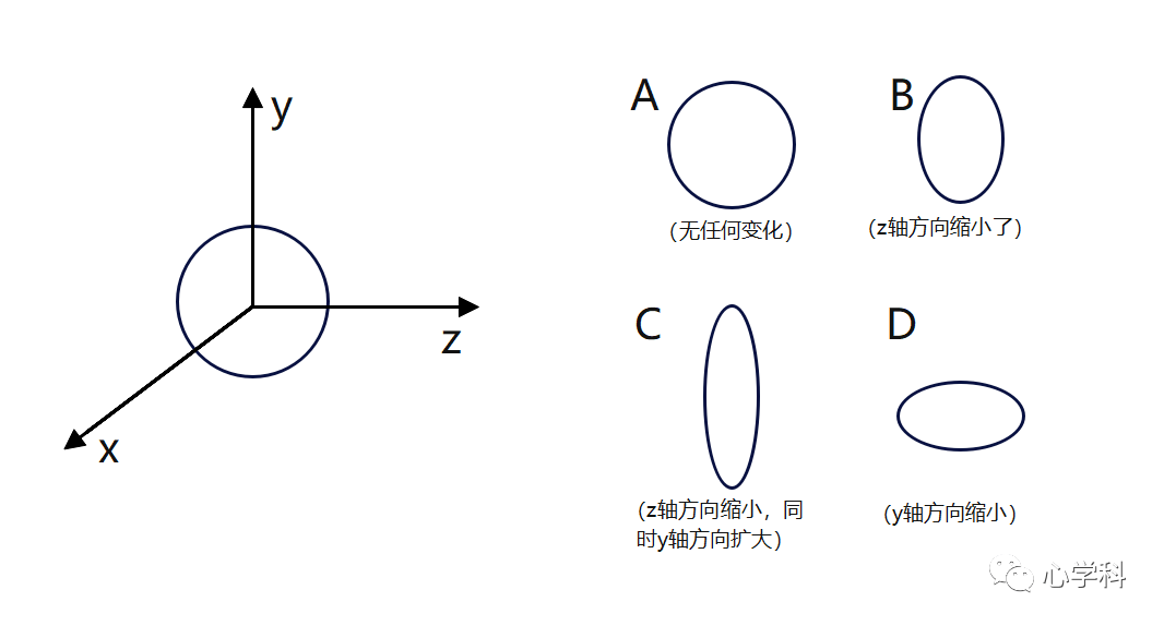 第五题:把原子核延z轴加速到接近光速,观测到的原子核应该是什么样的?(面试的时候没有图上括号中的内容)