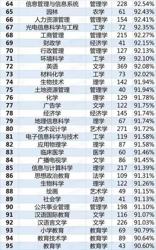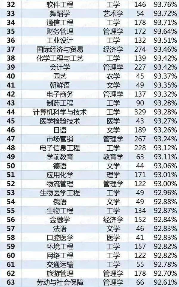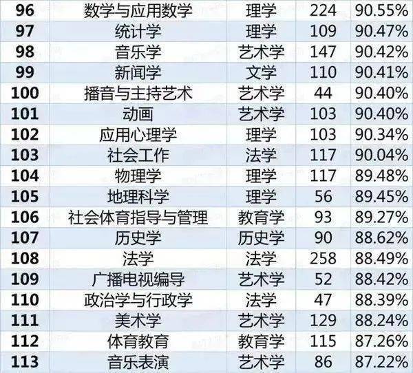 2020年113个本科就业率排行