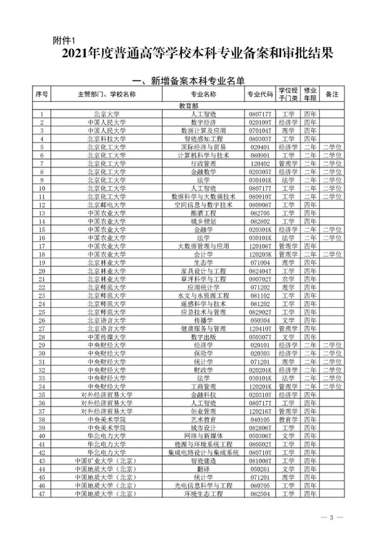 以下为2021年度高校新增备案本科专业名单(1773个)