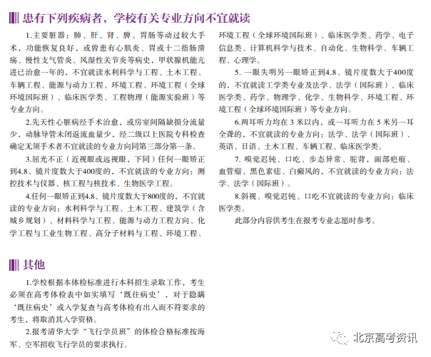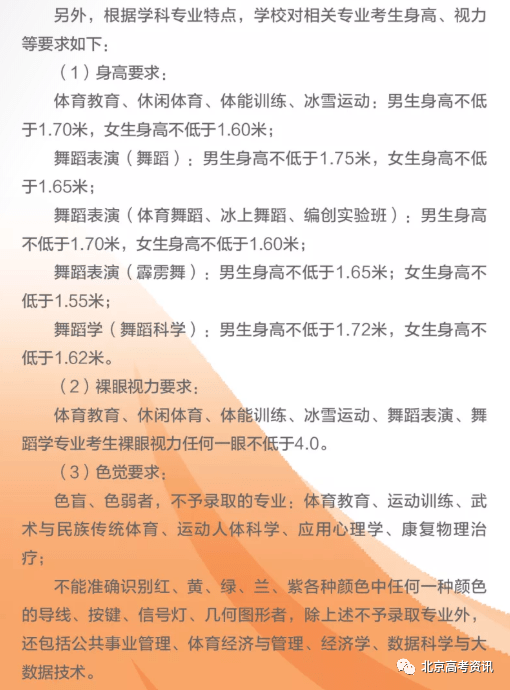 以北京体育大学为例子,查看《北京体育大学2021年本科报考指南》可知,根据专业特点,有不同的要求。