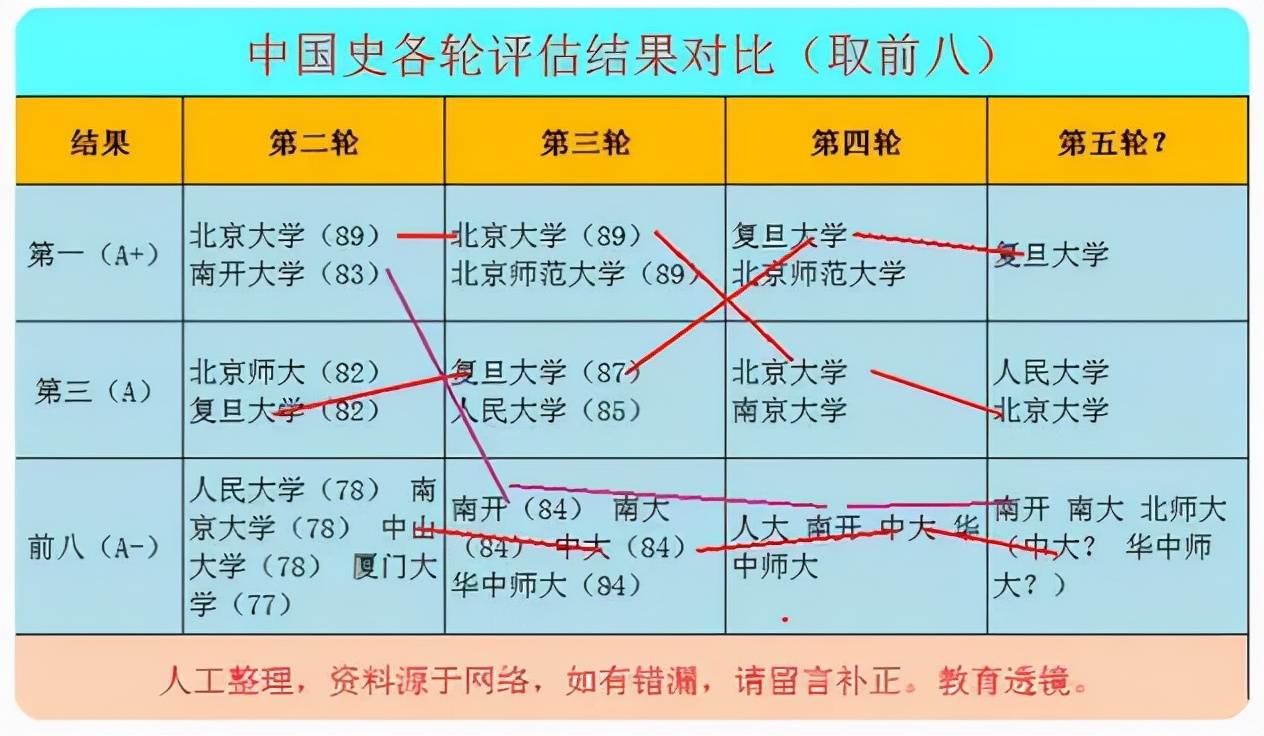 此外,虽然全国第五轮学科评估结果尚未公布,但已经网传出了个别学科的评估结果,比如中国史。