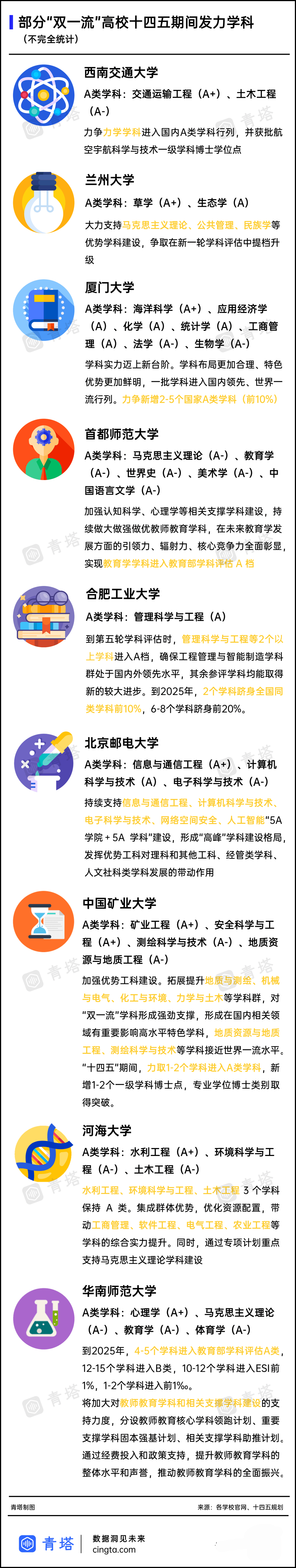从西南交通大学的热门学科力学,到兰州大学的特色学科草学、生态学,这几所高校拟冲击A类的学科,都拥有扎实的基础和相当的实力。