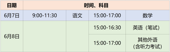 (一)统一高考时间安排
