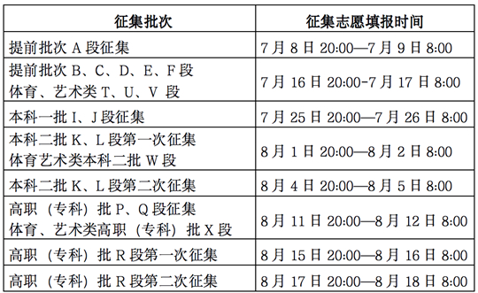 (四)征集志愿的时间安排