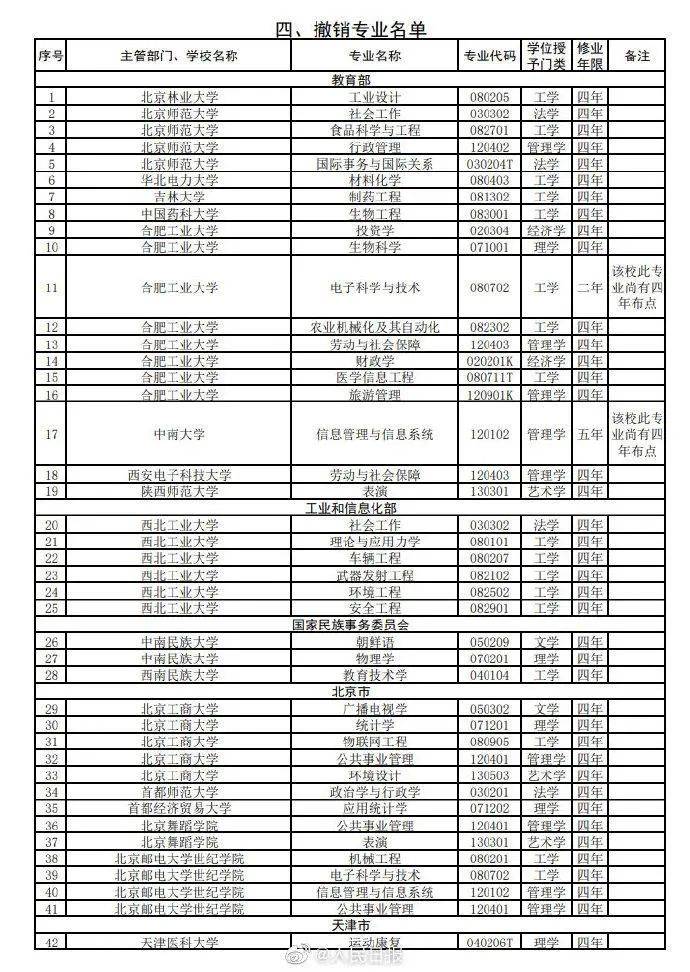除了这三个专业,还有哪些专业也曾面临撤销的风险。看看下面这张来自@人民日报的图片,你的专业中招了吗?