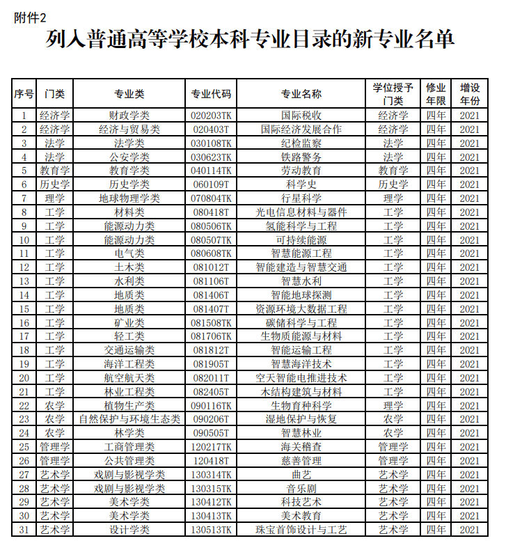 当然大家也不要过于悲观。有旧的专业被撤销,但也有新的专业增加,一起来看看: