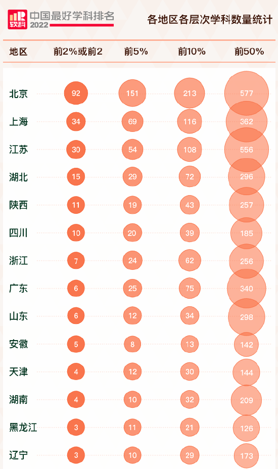 京沪顶尖学科占优,江苏上榜总数第二