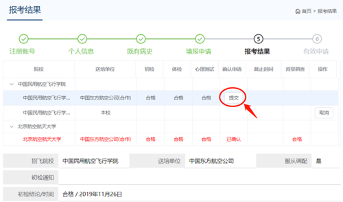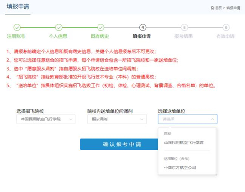 在上面一个问题中,我们提到的志愿组合填报仅仅是招飞志愿填报的初级阶段,这些志愿必须经过确认,升级为有效招飞志愿后,才有进一步实现航空梦的可能。